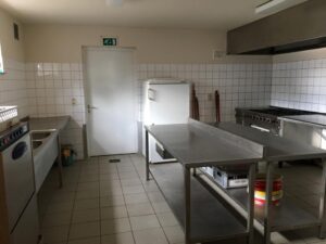 Er kan gebruik gemaakt worden van een uitgeruste keuken. Een industrieel gasvuur en afwasmachine staan ter beschikking.